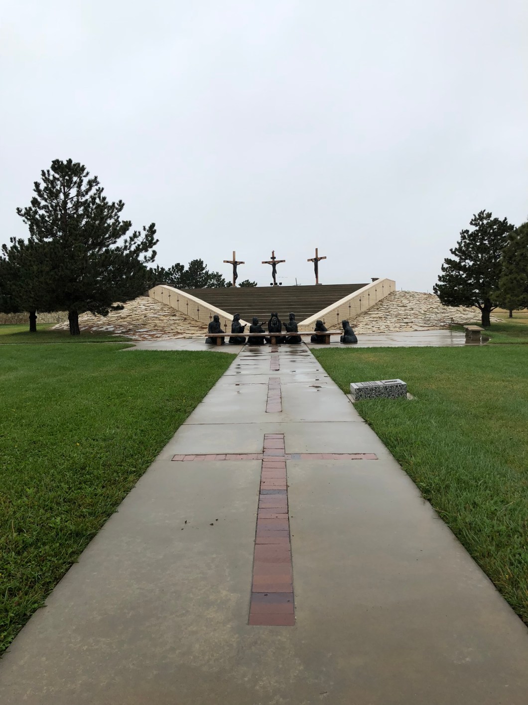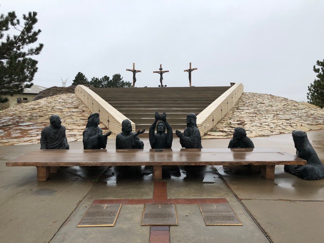 When you drive up there is a circle surrounding the cross with statue scenes from Jesus’s life and other scenes. There are plaques at each statue explaining what they are along with scripture.