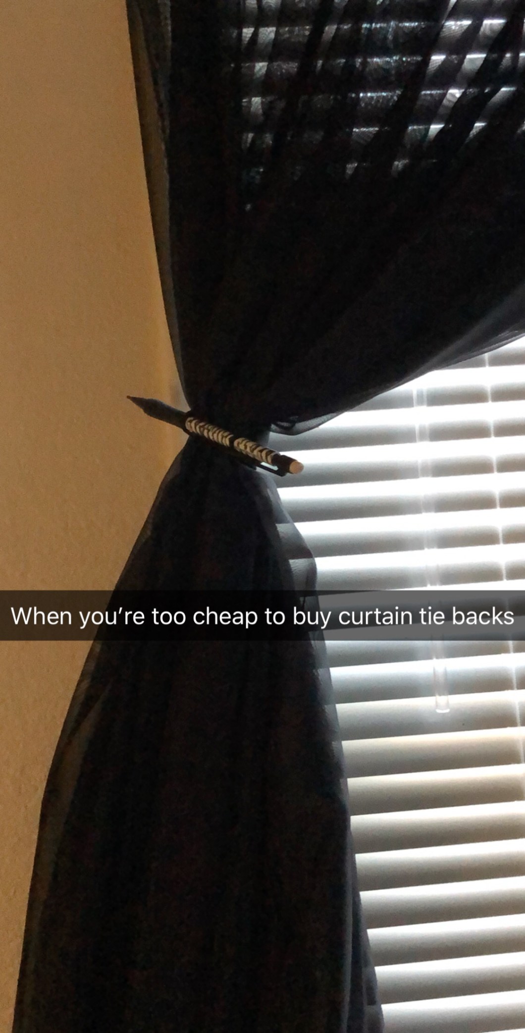 Ok, back to why I started this post. I have a curtain or curtains if you count each panel separately, on the one smaller window (but still bigger than regular windows) that’s on the side of the living room. I used to drape the panels over the light switch on a lamp that I had in the corner to hold the curtains open. Now that I moved the lamp, I don’t have anything to keep the curtain(s) open so I had to use the next best thing.