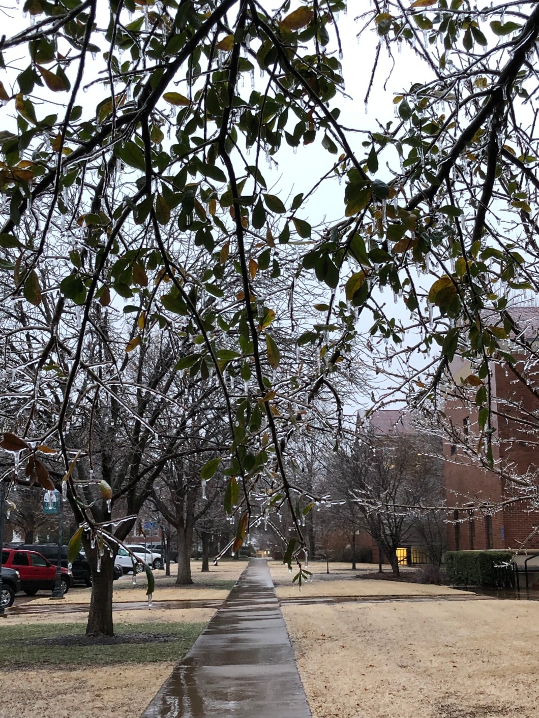 Those branches are eye level but I had an umbrella so I just walked right through them. It was fun. Ice is dangerous so don’t try this at home, or anywhere, but I like walking on iced grass and making it crunch.