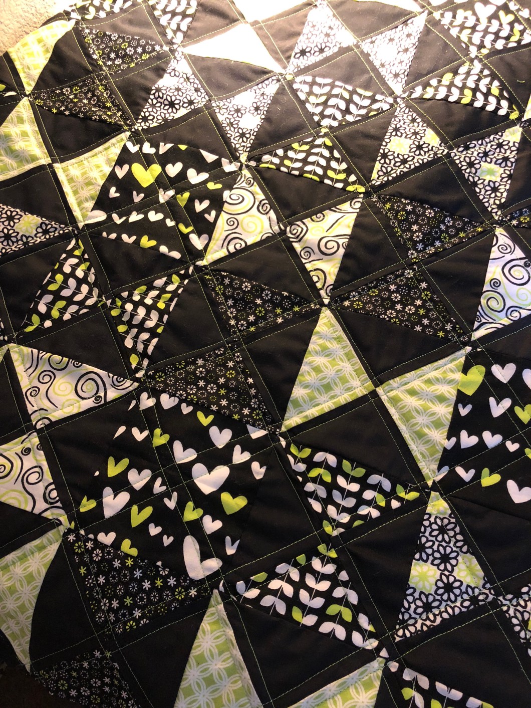 My friend JP introduced me to a quilt blog years and years ago called Red Pepper Quilts and that’s when we both started quilting. Red Pepper has quite a few tutorials and lots of helpful pictures. She also sells some of her patterns on Etsy. I really want you to check out her quilt blog, you’ll be amazed! I’m amazed at myself for what all I can do now because of it. Because of Red Pepper I learned to make the entire quilt myself-the quilt top, the quilting, and the binding. She does the entire quilt herself (and has excellent quilting skills) so that’s what I thought you were supposed to do. I thought everyone quilted that way but a lot of people are surprised to find out that I can make a complete quilt all by myself. Machine sewing of course, but it still counts. I found out much later that you can just sew the quilt top then take it somewhere to get it quilted and finished. I might do that next time so I can donate an adult size quilt, something I can’t do normally with my super small workspace. Every quilt I’ve made so far has been baby or toddler size.