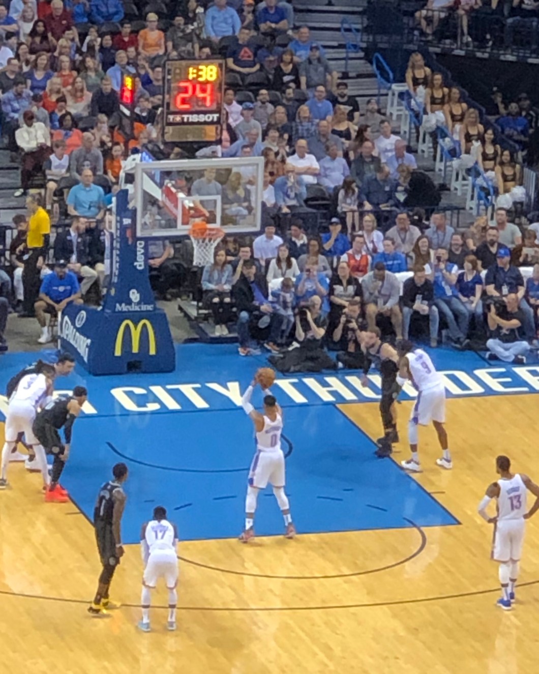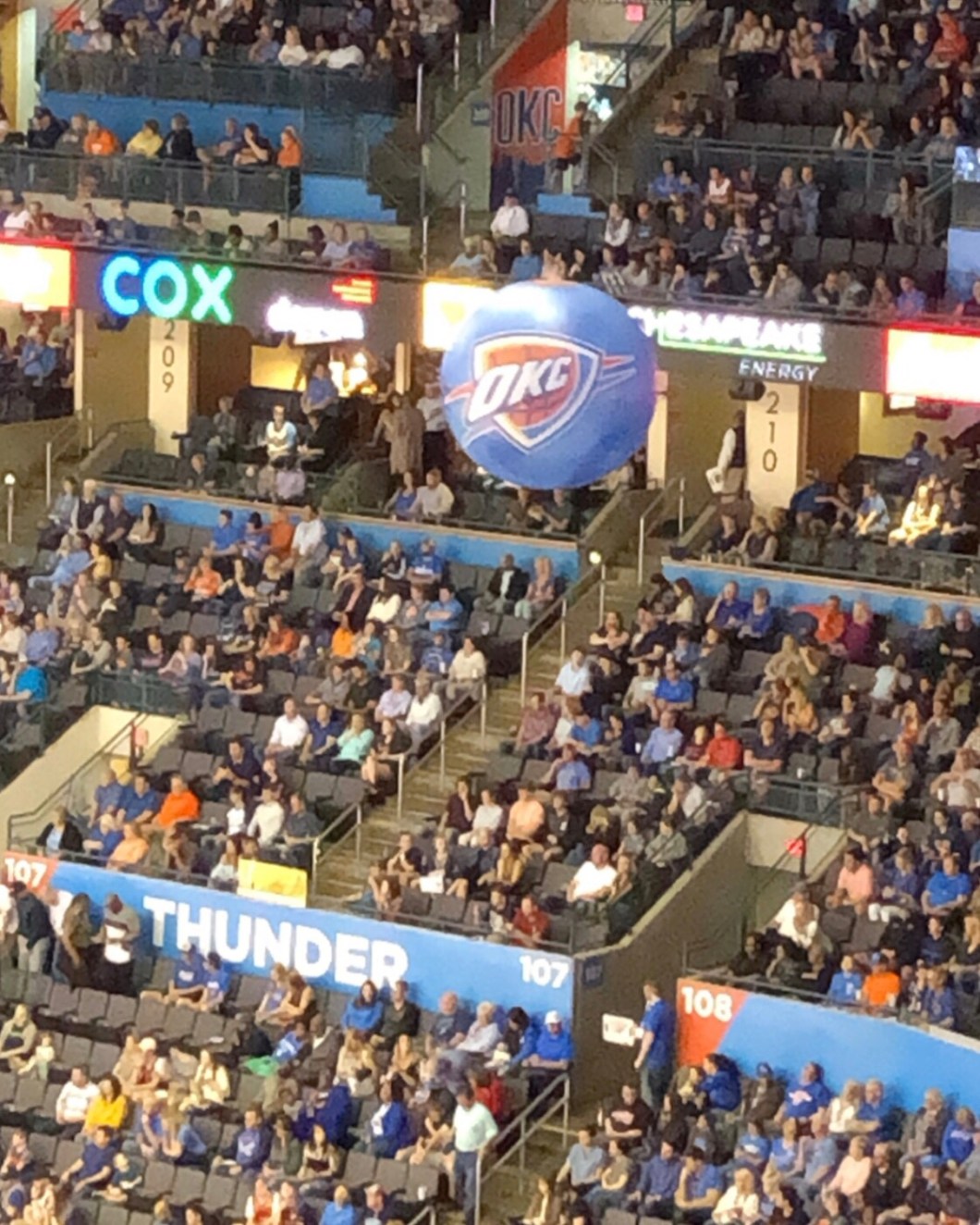 After all these years I finally went to my first OKC Thunder game! You know by now that I hate people and I’m not really into sports but I am a Thunder fan. Doesn’t make sense but it’s me so why would it? Anyway, I won’t turn a sports game on in my house but I will totally watch and cheer and stress out when a game is on at someone else’s house.
