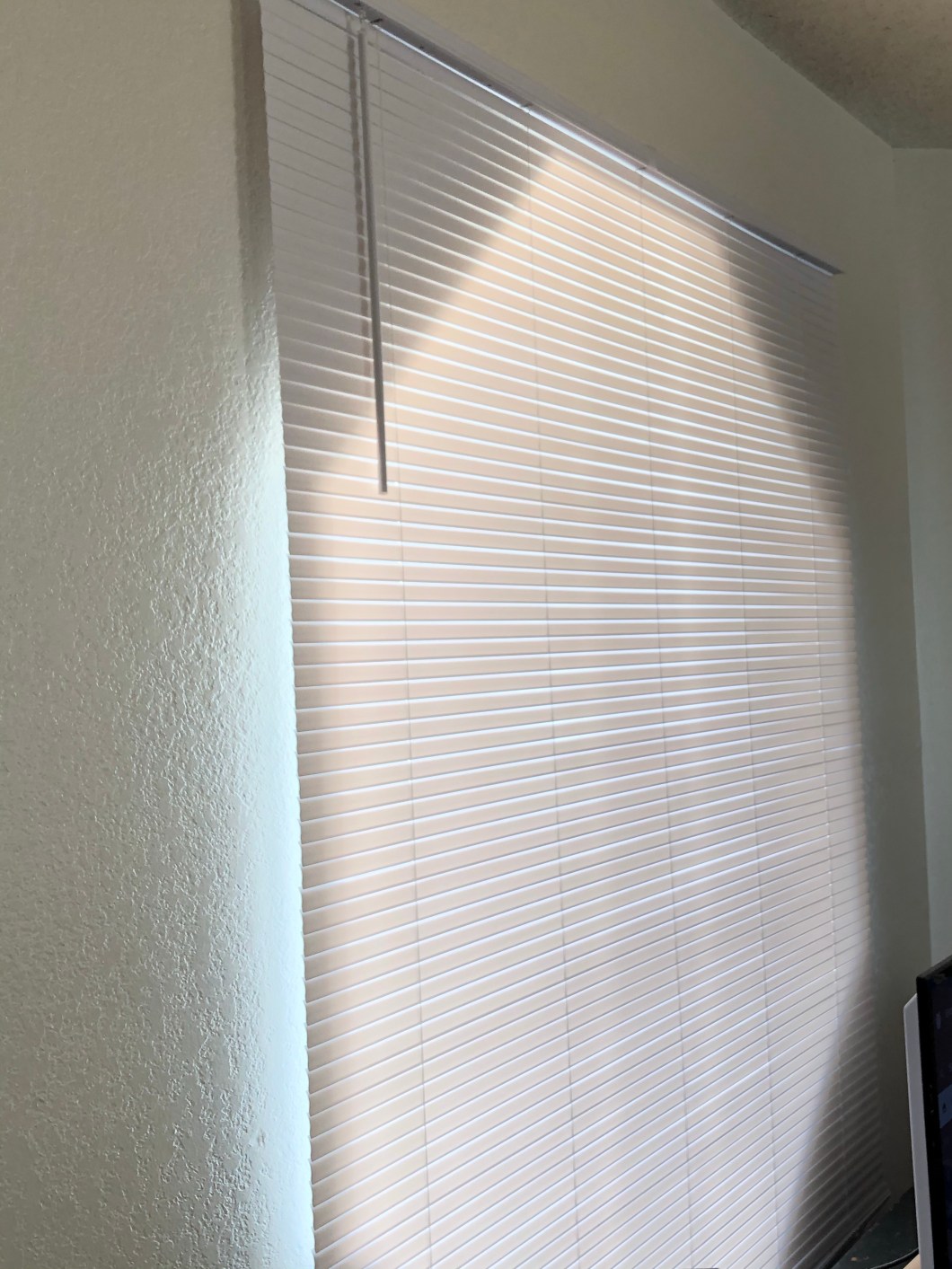 The funny thing is we have another living room window that doesn’t fit blinds so they’re on the wall again, instead of inside the window area.