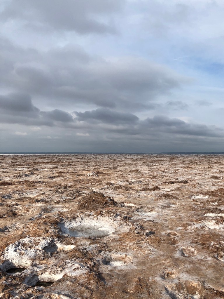 So normally when we’re here, there is never more than three vehicles (if even that many), including ours, that are here to dig but I guess the Quarantine People have been coming here all this time. There were around 8-10 vehicles already parked and a couple of more driving up when we arrived. And they had the big shovels, like they were planning to dig underground shelters and tunnels. I was disappointed at how much the place was dug up, and it’s only May. I don’t even remember it being this bad in late August. At this time you wouldn’t even need sunglasses because there was barely any salt on the surface to reflect the sun.