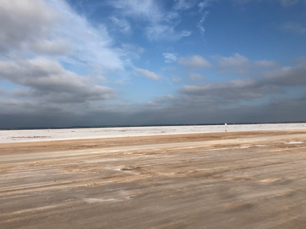 A storm was coming in. It got really cold after a while. It’s usually burning up and super bright. I warn everyone to wear a hat and sunglasses. I usually take an umbrella because I want to be fancy like that but the wind was out of control so I didn’t get to use it. The white areas are where you dig. But they section it so the crystals will have time to reform in the other areas so you’re limited to one digging part each year. The rest of the sections are closed.