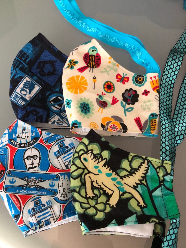 I also sewed lots of masks and made mask “kits” for other ladies to sew and give to everyone. When it all began, the fabric stores closed and online ordering was slow. The girls and I just happened to be at Joann’s fabric store and overhead the worker ladies talking about a phone conversation that eventually led to the store closing. Later they did allow online ordering with curbside pickup, but luckily that day we were there I grabbed some cute black ruffle elastic. All other elastic was sold out, and I barely had any plain elastic at home leftover from other projects.
