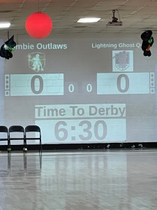 It’s October so that makes everything more fun. The teams had Halloween names and some wore Halloween makeup. Seating was scarce but you could take a chance and sit on a chair in the rink crash zone. Better than courtside seats, here you’re actually on the court!