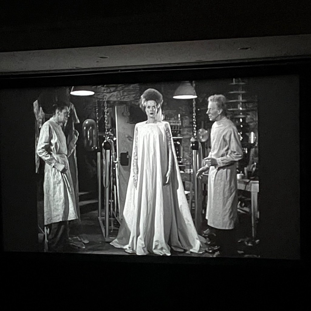 This is The Bride of Frankenstein, shown in the Oklahoma City Museum of Art. It was so nice to be in a theater that didn’t have sticky floors and dirty chairs and screaming children and people talking.